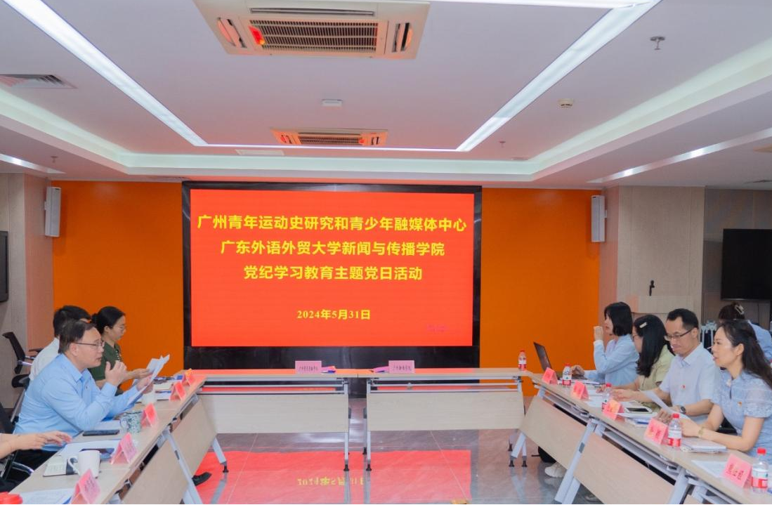 为深入学习贯彻习近平总书记关于党纪学习教育的重要讲话精神,扎实落实党纪学习教育,推进教学实践基地建设和访企拓岗工作,5月31日,广外新闻学院赴广州青年运动史研究和青少年融媒体中心(以下简称“广州青运青融中心”)开展党纪学习教育主题党日,开展联学共建和访企拓岗活动。广州青运青融中心总编辑符国章、副主任丛光辉,新闻学院党委书记包生耿、副书记涂颖、辅导员及学生党员代表等相关人员参与此次活动。