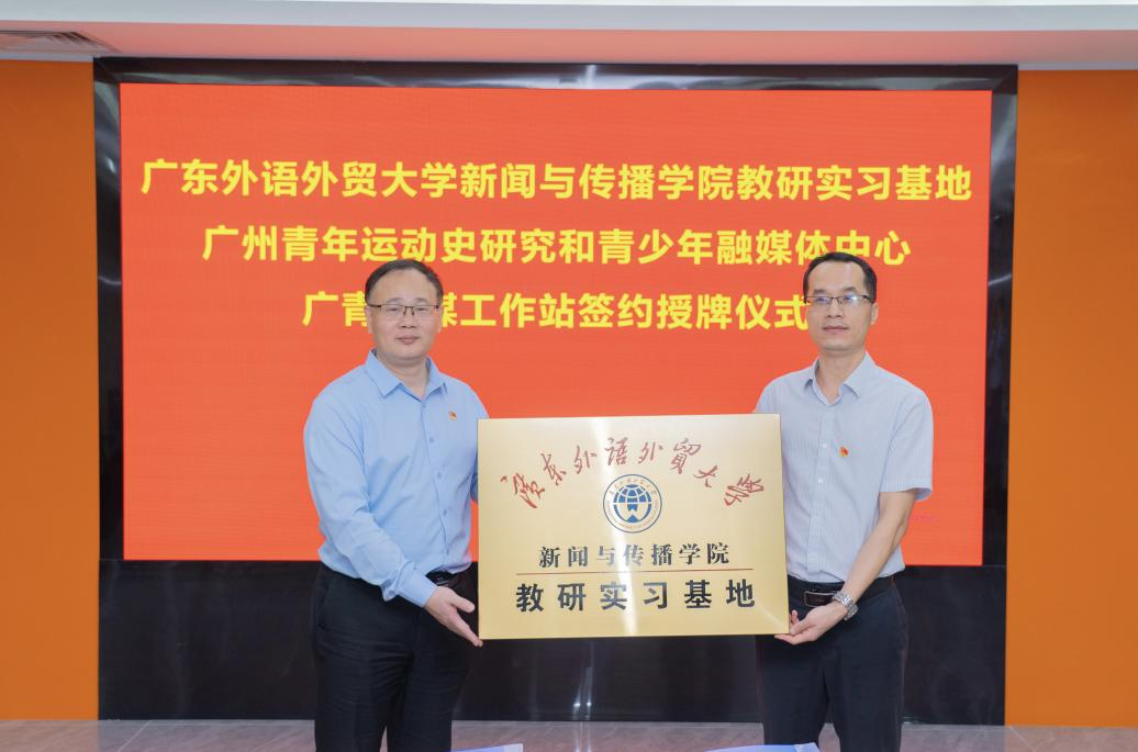 在本次联学共建活动中,双方签署了实习实践基地共建仪式,广州青运青融中心成为广外新闻与传播学院教研实习基地,广外新闻与传播学院成为青运青融中心广青融媒工作站,双方签订合作协议书并互赠牌匾。学院师生在广青融媒新时代文明实践中心展厅参观了“擎旗铸魂 永久奋斗”团属舆论宣传阵地建设的探索与实践展。双方表示将共同努力,加快推进党建团建联学共建、实习实践基地建设、融媒体工作等版块合作,实现资源共享、互利共赢。