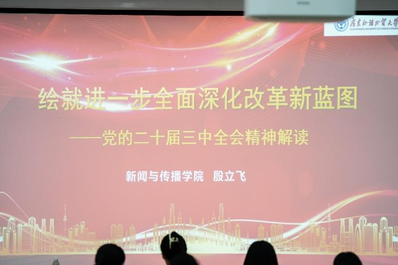 殷立飞结合实例,向参会师生解读党的二十届三中全会精神。他指出“深化改革就是跟党创业”。涂书记表示,希望同学们认真学习领悟党的二十届三中全会精神,坚持党的领导,关注改革发展动向,做好党实现历史性目标的生力军,积极发挥自身优势,传播中国故事与中国智慧。