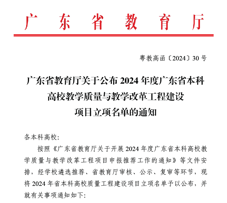 又讯,近日,广东省教育厅公布了2024年度广东省本科高校教学质量与教学改革工程建设项目立项名单,王雪晔老师申报项目《读图时代国际传播人才的视觉素养与批判思维提升研究》获批省级高等教育教学改革项目。