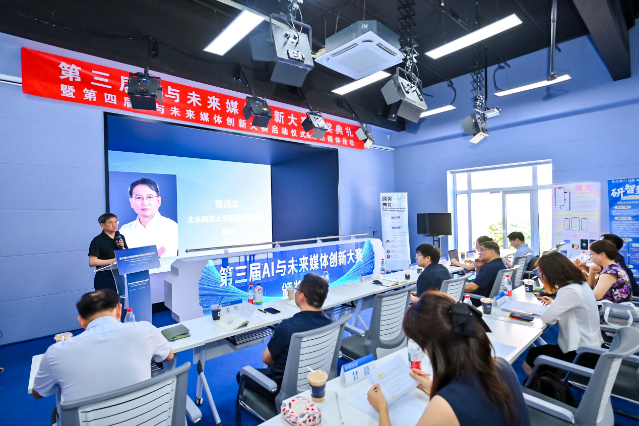 2025年6月8日,由北京师范大学新闻传播学院发起,广东外语外贸大学新闻与传播学院、北京师范大学出版集团、网络空间研究院共同举办的第三届AI与未来媒体创新大赛颁奖典礼暨第四届AI与未来媒体创新大赛启动仪式&未来媒体论坛在北京师范大学新闻传播学院新五维空间隆重举行。此次大赛旨在进一步落实建设国家新一代人工智能创新发展和人工智能创新应用要求,加快推动在人工智能等科技创新领域建设步伐。