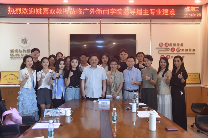 李峻岭副院长对姚喜双教授莅临广外指导播音主持专业学科建设表达了感谢。他指出,当前国内高校的播音主持专业出现一批关停并转现象,播音主持专业的人才培养亟待应对技术变革、专业拓展、市场趋向等一系列升维研讨及精准化定位,作为国家级一流本科专业建设点以及软科、GDI智库多个榜单的全国A类专业,广外播音主持专业学科发展特别需要广纳建议,积极听取专家学者的想法、意见,努力把专业建设做深做实。
