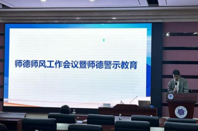 2025年10月23日下午,新闻与传播学院2025年秋季学期教职工大会暨师德师风建设会议于大学城校区南C201召开,全体教师出席参加会议,本次会议分为“广外翻译教师团队代表作专题分享”和“师德师风工作会议暨师德警示教育”两个部分。