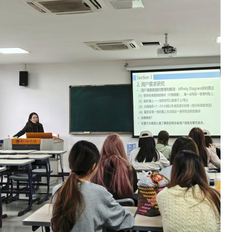 “想要设计出好的新媒体产品,一定要满足目标受众的需求。”在A304的课堂上,黄琦翔老师通过理论与实践相结合的方式,从用户需求角度入手,带同学们领略新媒体产品设计的奥秘。黄琦翔老师通过分析小米汽车的营销案例来阐释用户刚性需求的核心要义,借助“今日头条”用户访谈的材料,一步步引导同学们整理用户需求亲和图,挖掘用户的核心需求点。再通过角色设定明晰用户画像,聚焦产品功能定位,解决设计难题。从案例分析到实操落地层层递进,同学们对新媒体产品创意设计的理解和运用更进一步。
