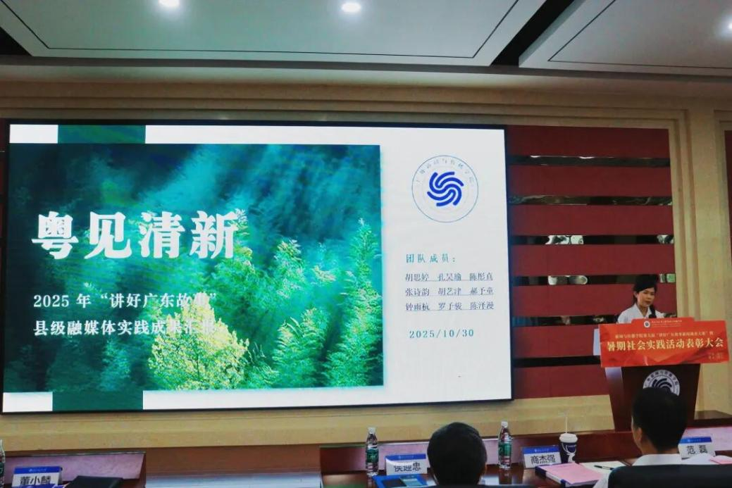 表彰大会展示了丰富的暑期社会实践活动成果。粤见清新团队立足“百千万工程”需求,创新采用“全区覆盖+精准定点”调研模式,结合“IP孵化—内容生产—传播转化”链路,打造乡村微综艺、微短剧、 AI创新视频等作品。