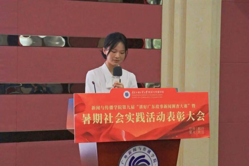 第九届“讲好广东故事新闻调查大赛”暨暑期社会实践表彰大会的成功举办,不仅展示了广东外语外贸大学新闻与传播学院学生们的优秀成果,也为学院的新闻传播教育增添了光彩。学院将继续致力于培养具有国际视野、创新精神和社会责任感的新闻传播人才。