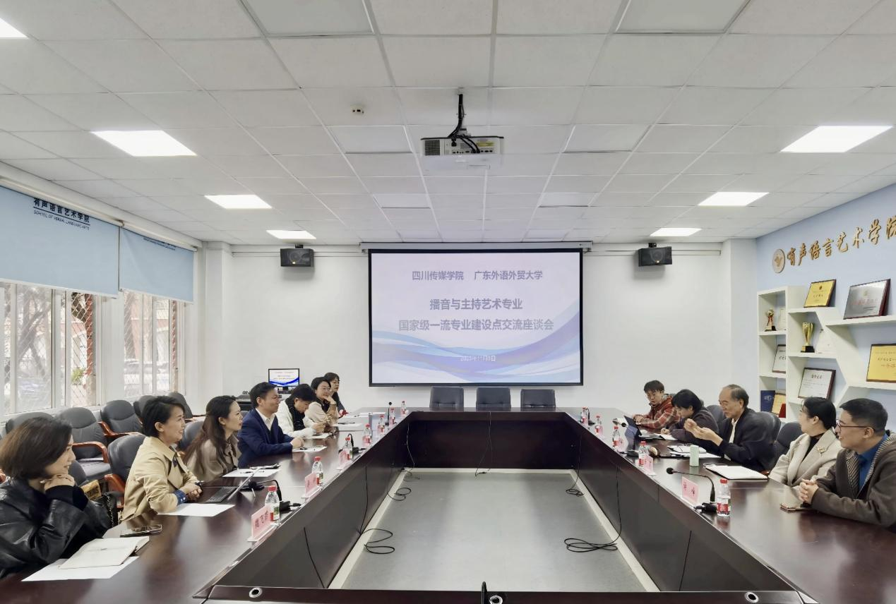 为积极响应新时代传媒人才培养需求,进一步推动播音与主持艺术专业的学科建设与教学改革,2025年11月4日至7日,广东外语外贸大学新闻与传播学院副院长李峻岭、学院党委副书记涂颖带队,播音与主持艺术专业李洋教授、李琳教授、陈芝教授、魏飞菲博士及辅导员丘唐唐一行7人赴四川省成都市开展专题调研。调研团队先后走访了四川传媒学院、四川师范大学、四川电影电视学院三所开办有播音主持国家级一流本科专业建设点高校,围绕实训体系建设、人才培养模式、学界业界融合等议题展开了深入交流与学习。