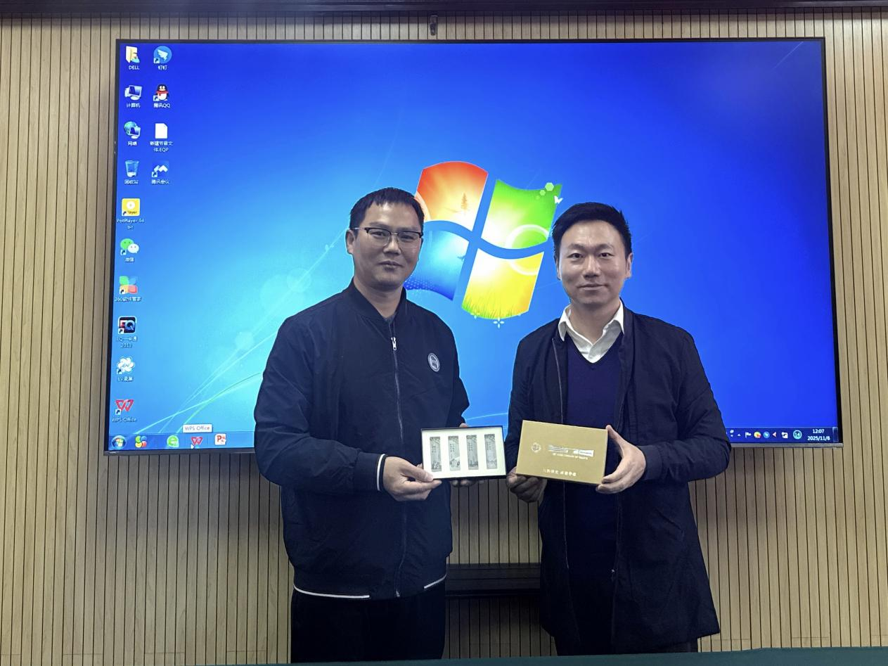 新闻学院副院长李峻岭向川传有声语言艺术学院院长马玉坤赠送纪念品