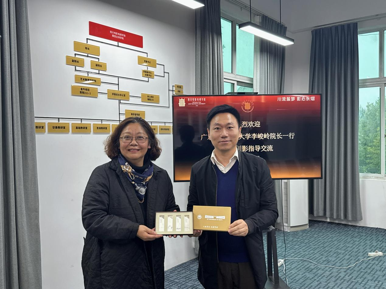广外新闻学院向川师大影视与传媒学院赠送纪念品