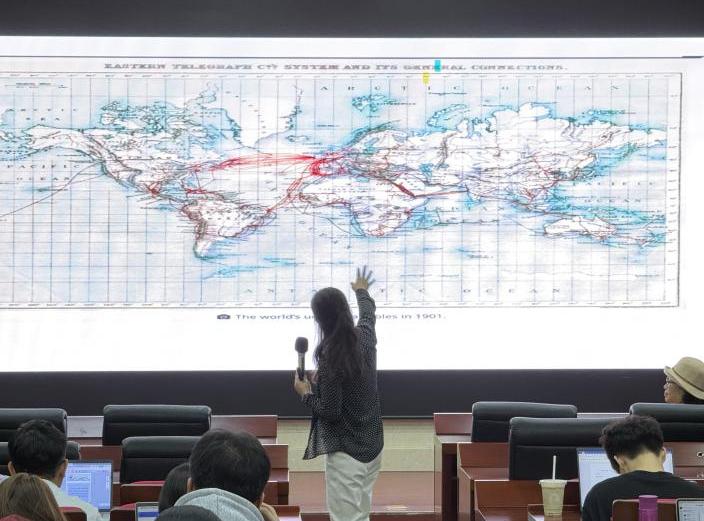 辛欣博士通过展示1901年的全球电报电缆分布图,揭示了通讯基础设施的建设始终与大国战略、资本扩张和地缘竞争紧密相连。她特别指出,如今谷歌、Meta、微软、亚马逊等跨国科技巨头已深度参与甚至主导海底光缆的建设和拥有权,这改变了由国家或专业电信公司主导的传统局面。