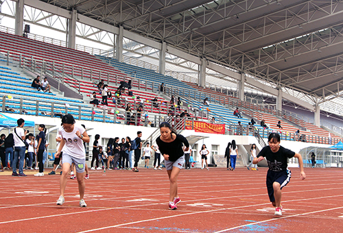 而在第二组的比赛中,选手们则在最后的冲刺关头完美诠释了分秒必争。来自广告1401班的陈晓贤首先在第一圈领先对手。可在跑到第二圈时,来自广告1301班的刘芷因逐渐发力,先后超越两名选手与陈晓贤并驾齐驱。在最后的冲刺阶段,伴随着呐喊声和打气声,刘芷茵加速反超了一直领先的陈晓贤,最终以0.008秒的优势拿下小组第一、总成绩第二的佳绩。