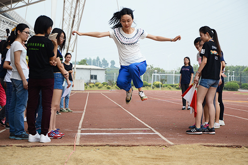 跳远比赛虽没有刺耳的鸣枪信号,也没有跑道上飞驰的步伐,但每位跳远选手们的奋力一跃,都表达了他们对院运会的期待与热情。
