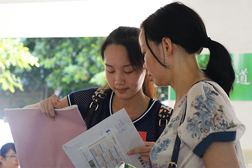 无论是自己驾车来到广外还是坐火车坐飞机赶来广州,陪着新生一同报到的家长们无疑是最辛苦的一群人:除了照看行李物品、生活用品,操心宿舍设施是否完备,还要时刻留意着孩子进入新环境时的心理状况。他们默默地帮新生们提行李,却又在孩子转过身报到的时候向志愿者絮絮叨叨对孩子的期望和担忧:“我希望她能够读个双学位,多学点东西。”“他就最怕英语。”“最好能多结识点朋友,不要老是不说话。”