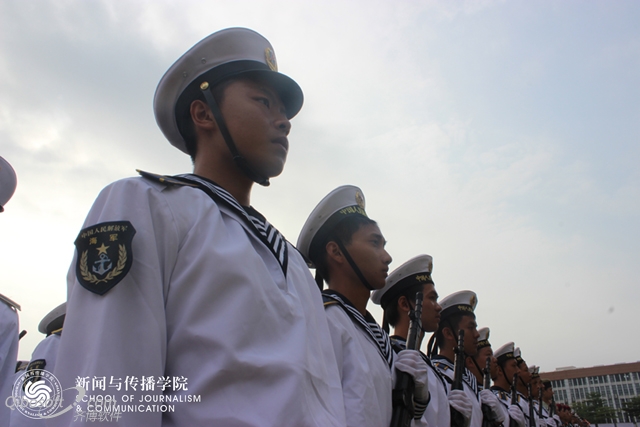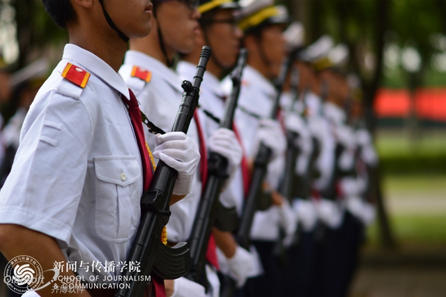 本次军训摄影大赛的一等奖作品是新传学院大二学生陈诗蔚的《军训阅兵》。在随后的采访中她表