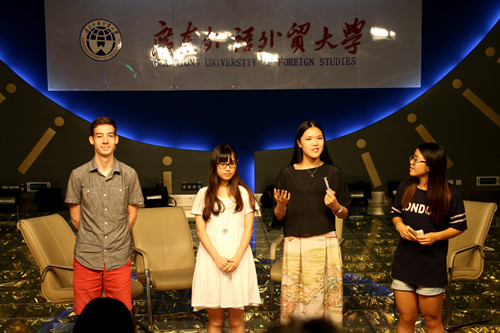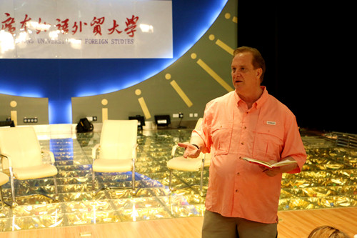 5月30日,在广外新闻与传播学院播主演播厅,西弗吉尼亚大学的Jim Ebel教授带领着15位美国学生,与13级广告系全体学生一同完成了2015年度为期5天的《整合营销传播》课程的最后一堂课。