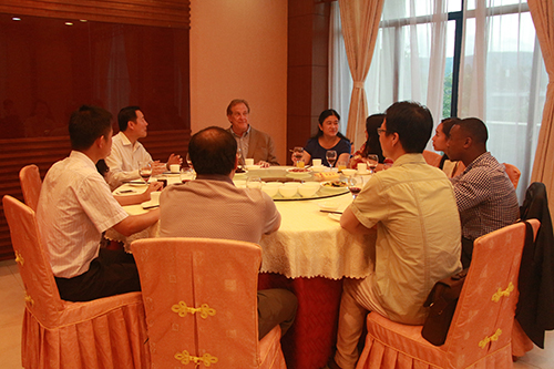 6月9日晚,来自西弗吉尼亚大学的Jim Ebel教授以及交换生们齐聚广外北校区清雅园,共享欢送晚宴。西弗吉尼亚大学的广外之旅暂告一段落,但Jim Eble教授说道:“这不是告别,因为我们还会再回来。”我校副校长方凡泉、教务处副处长余盛明、国际合作与交流处副处长吴俊峰、我院党委书记黄秀娟等领导出席了本次宴会。