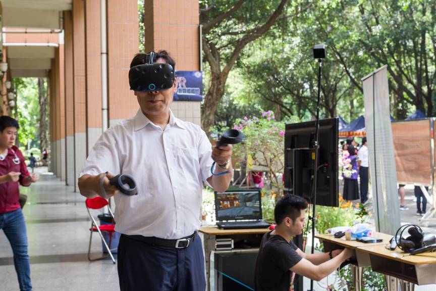 隋广军校长一行观看VR技术运用