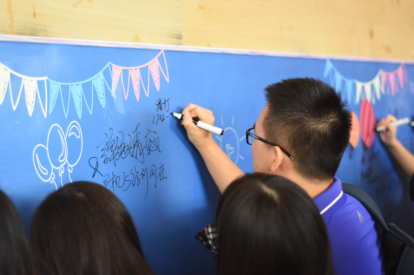 最后,校歌渐渐响起,“白云山清,碧溪水蓝;携侣中外,凤鸣岭南……”,开学典礼在悠扬的校歌声中结束。新生们也纷纷在“我准备好了”的签名板上写下了自己的名字。