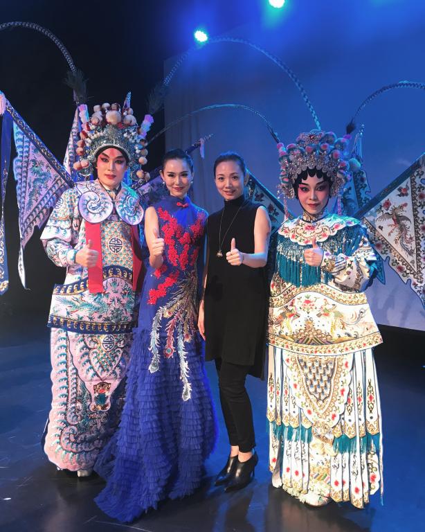 柳雅婧(左二)与晚会总导演赵军芳(右二)、广州粤剧院艺术家梁文超、余碧玲合照