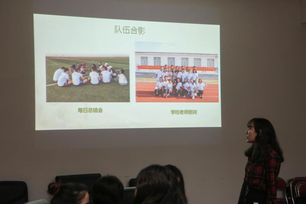 首先分享学习心得的同学是来自16级学生马合巴勒·木尔扎汗。她回忆道:大一作为团学实践部成员的她,在了解到许多新疆生在饮食、语言、住宿习惯等方面与汉族学生的差异后,提出了关于召集新疆少数民族学生前往新疆进行三下乡活动的设想,而这一设想得到了部门与指导老师的认可。而对于这样特别的三下乡的举办,她认为,这为新疆学生搭建了认识内地学习生活的桥梁,增强学生的社会责任感和团队合作意识。