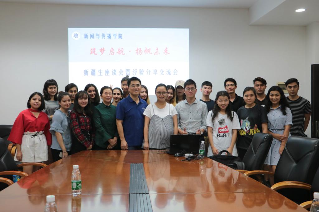 本网讯 10月26日下午,新闻学院以“筑梦启航,扬帆未来”为主题的新疆生座谈会暨经验分享交流会在我院院系楼254会议室举行。学院邀请了优秀的新疆生代表分享他们在大学学习、社会实践、考研等各方面的经验,旨在为新疆生提供一个师生交流的平台,让新疆生相互学习,自我激励。学生工作部(处)杜雯老师、文娇老师,院党委副书记黄石胜、团委书记陈博菲以及学院全体新疆生同学参与了本次会议。