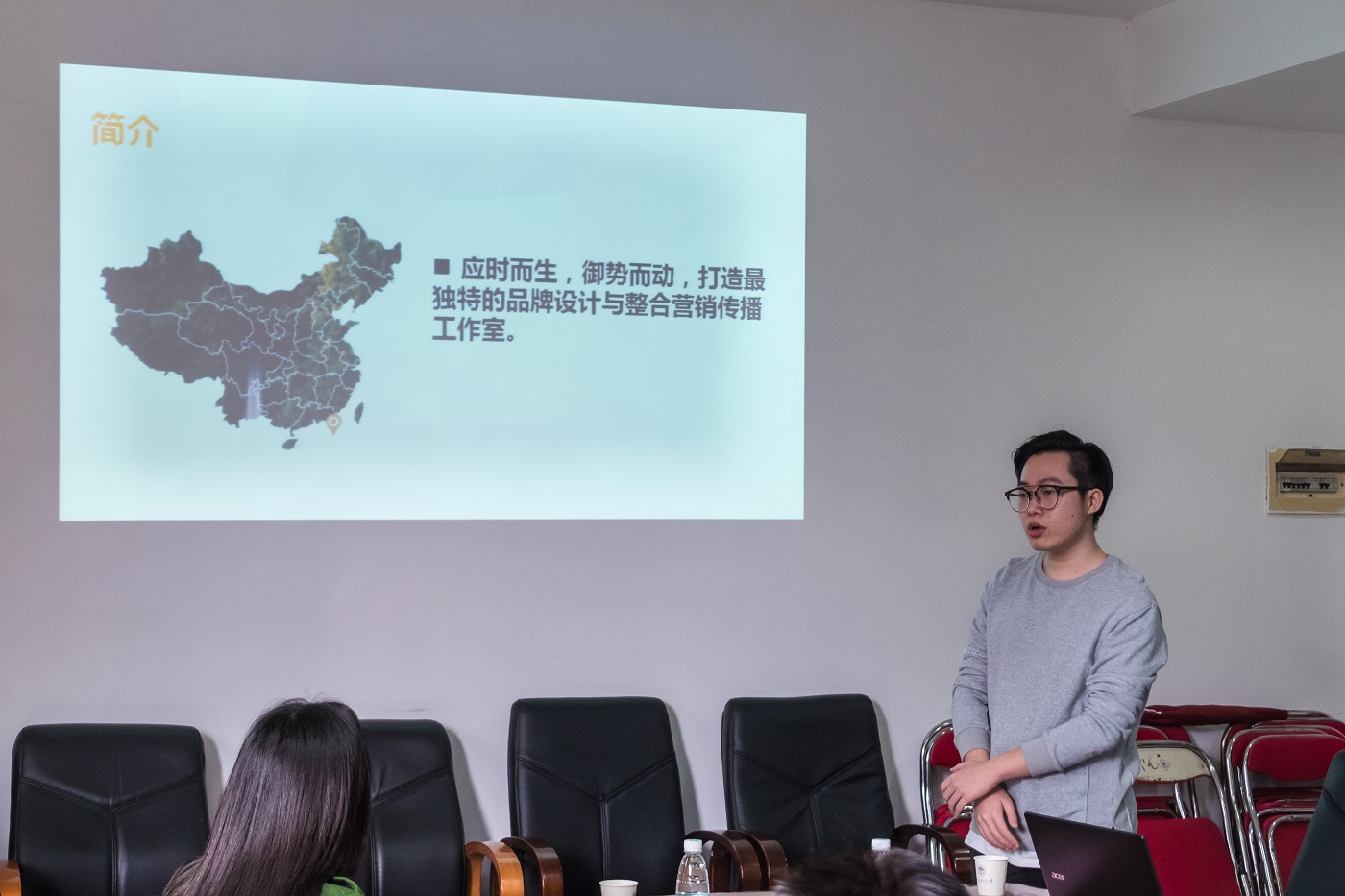 全媒体创新创业中心学生团队负责人刘宇轩也为在场领导介绍中心运营情况。这个由师生共建的中心依托我院广告专业学科背景,使用项目组的运营模式,不断接收中小型企业以及校园组织的项目订单,并积极参加校内外的广告比赛,目前已享有一定的知名度。该中心还设立了公司化运营、年底注册为个体工商户的目标,努力构建具有“政媒产学研一体化的全媒体创新创业训练与实践体系“的实践中心。
