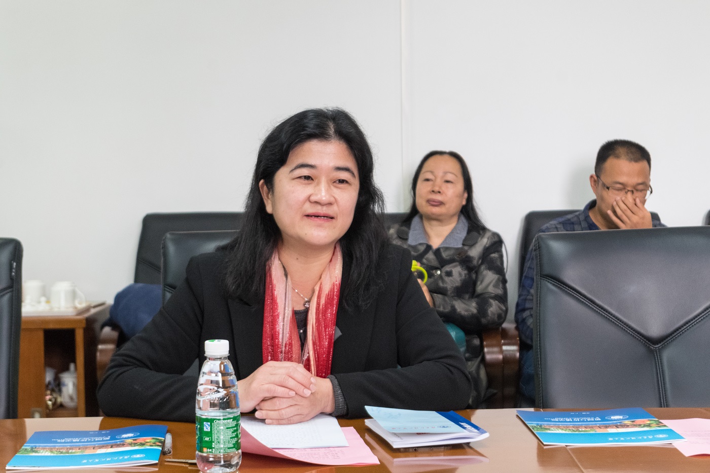 黄秀娟向在场领导介绍了我院的建设历史、学科建设、科研力量、党政建设、特色活动、毕业生就业情况等情况,对学校领导和各兄弟单位对我院的关心支持表示感谢。