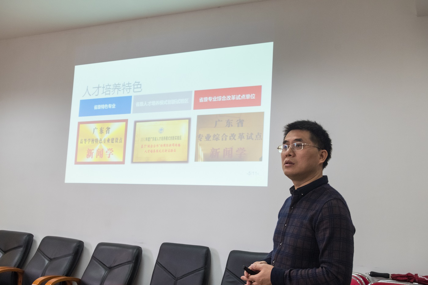 在会议上,刘海春对于我院的“专业+思政”的模式表示肯定。他说到,人才培养既依托“本专业的素质打造”,也依托“学院思政工作保障”。在学科建设方面,他还看重我院“语言+专业”的特色,将学校的外语优势以及本专业结合起来,相比其他学校的新闻学院而言特色鲜明。此外,他还肯定了我院在科研、师生团队建设方面的长足进步。