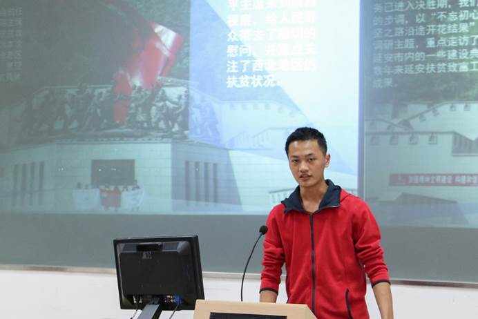 接下来,是北京-西柏坡、上海-嘉兴、贵阳-遵义和西安-延安等四支调研队伍汇报。上海-嘉兴队以"传承红色基因,重走初心之路"为主题进行了为期8天的实践活动。队伍以线上和线下相结合的方式探索红色资源在当地的传播情况,在嘉兴南湖革命纪念馆和南湖红船调研期间,还得到校党委书记隋广军书记亲临慰问指导,参加了隋广军主持的座谈会,并见证了我校与嘉兴南湖革命纪念馆共建思想政治教育基地合作签约揭牌仪式。团队代表示虽然调研过程遇到台风天,室外高温,采访对象难找,拍摄被拒等困难,在指导老师的指导和帮助下,仍然顺利完成了整个调研活动。