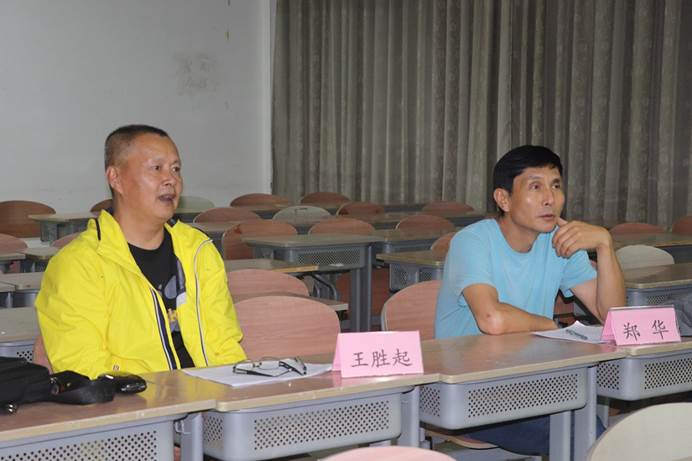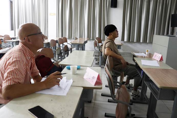 王胜起与郑华在评审作品