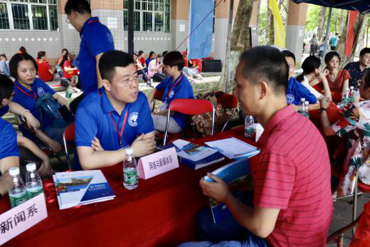 据悉,今年我院新设立了“全媒体国际传播创新班”,2019年开始招生,受到考生和家长以及社会各界广泛关注。新闻专业作为省级名牌专业,持续受到考生和家长热捧。2015年开始创办的网络与新媒体专业咨询点,也被考生和家长围的水泄不通,系主任姜熙博士为考生及家长详细介绍专业主干课程和人才培养计划,以及首届毕业生的就业优势。我院优秀外教Chad也积极参与招生咨询活动,热情为考生和家长服务。