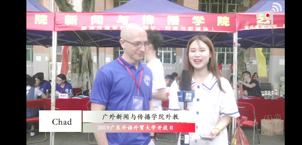 6月22日,广东外语外贸大学第二十届“大学开放日”在北校区隆重举行,我院咨询摊位受到广大考生和家长关注,特别是全媒体国际传播创新班、学生直播团队、全职外教Chad的参与成为招生咨询现场的三大亮点。