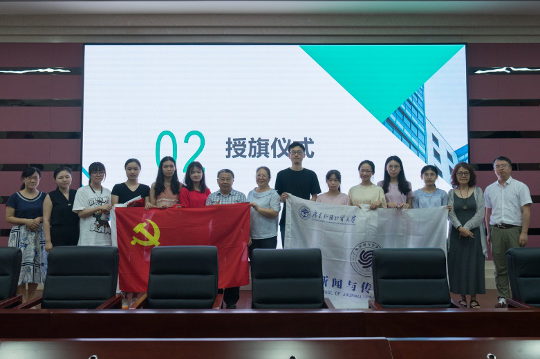 侯迎忠在致辞时指出:“同学们参加暑期调研实践活动,首先要从讲政治高度,以习近平新时代中国特色社会主义思想、建设美丽中国和传播国家形象为主题,发挥新闻专业素养,理论联系实际,努力争取出有创意的高质量成果。”侯迎忠致辞后,分别给8个团队授党旗和院旗。