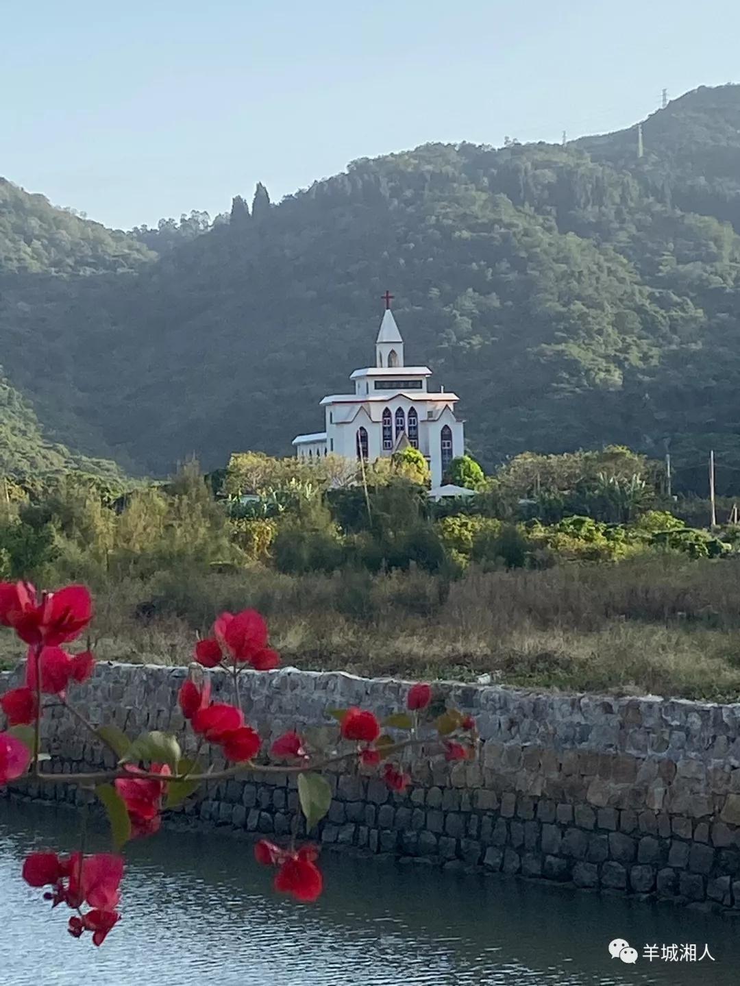 在深澳古镇,在去总兵府的路上,我看到一座高大的基督教堂,看上去规模还不小。乳白色的墙体,高高耸立的红色十字架,在暮色苍茫的山谷中格外显眼。在它不远处的一个街道转角,我看到一座袖珍式的小庙,里面仅可一人容身,上书“福德祠”,此时正有一年轻女子在烧香跪拜。求神拜佛体现的是人类面对大自然的一种敬畏之心。海岛上的人们“靠海吃海”,环岛皆波涛汹涌,他们的宗教信仰多与大海有关,他们对神的感恩与敬畏之情是值得尊重的。