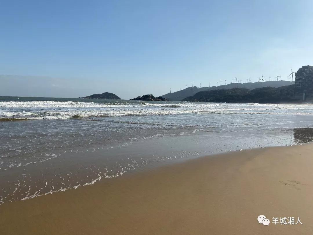 离开宋井,下一站便是青澳湾。这是南澳岛的最东边。这里的海风更为柔和,海滩更为柔软,是最令游人心醉之处。这里正在准备着一场帆船赛事,海浪中起伏飘浮的帆船与岸上猎猎作响的彩旗遥相呼应,节日气氛浓烈。海岸边的广场,耸立着北回归线的标志。两根直柱夹着一个巨大的圆球,呈门字型。此处游人较多,是远眺大海的好望角。拍个照留个影,与远处的海岛,近处的沙滩,还有蓝天白云、海水浪花同框。走下广场,是一片开阔的沙滩,沙质细软,海水清澈,据说这是广东省两个A级海滨浴场之一。初冬时节,阳光已不那么暴烈,虽不能入海,在海滩上漫步还是挺惬意的。