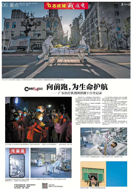 新闻学院13级校友黄锦辉现任职南方日报,跟随广东医疗队紧急奔赴湖北荆州,撰写《广东医疗队奔赴疫情第一线火线救援》《广东医生推着病床转运危重患者》等《战疫影像日记》系列报道。