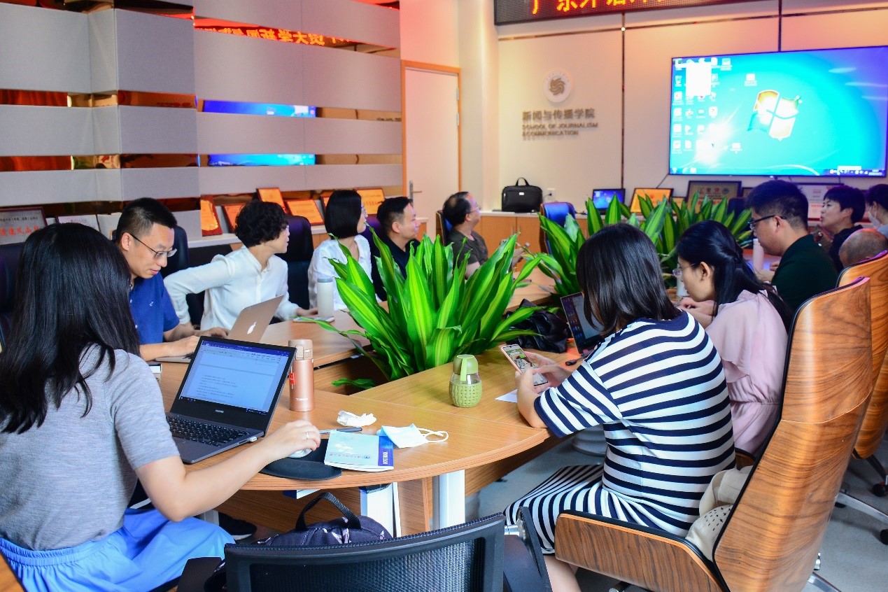 本网讯 10月15日下午2:45,我院在南校区学院教师发展中心B403会议室举办2021年度第二次高层次项目申报院内专家指导会,四位院内教师罗坤瑾教授、刘超教授、杨凯教授、陈鹏老师应邀作了高层次项目申报指导报告,会议由副院长罗坤瑾兼主持,新闻学院9名教师参加了此次指导会。