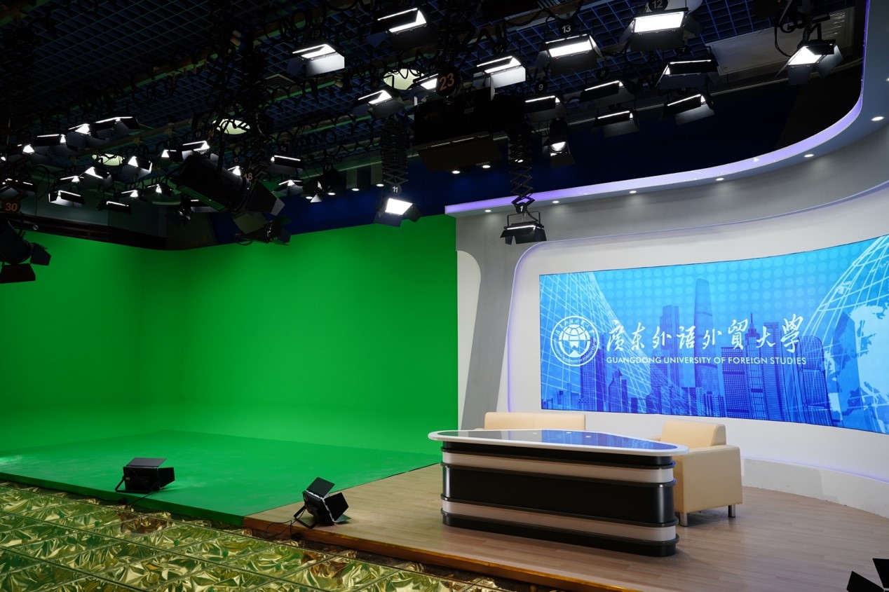 虚拟仿真演播实验室位于大学城校区实验楼E507,我院全媒体创新实验中心在充分考虑投入产出比的基础上,经过精心的设计与施工,最大化地利用了原演播厅的空间环境,全新建设了虚拟演播区、实景演播区、灯光照明系统、全息舞台等基础设施,引入了具有业界先进水平的相关软硬件,建成了在兄弟院校中首屈一指的三维虚拟演播系统和虚拟主播实训系统。经过本学期以来的试运行检验,已达到设计理念要求,满足使用质量标准。