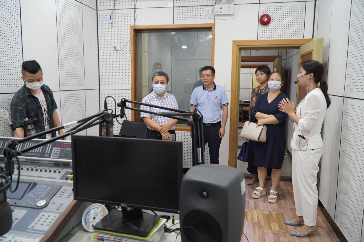 随后,在增城区融媒体中心党委书记罗锦房等人员的陪同下,我院一行参观了增城区融媒体中心的有线电视机房、制作室、电台直播室以及融媒体指挥调度中心,观看了增城区媒体融合发展历程专题片,走访成员深入了解了增城区融媒体中心运作情况,直观了解新闻直播、新闻作品生产过程。