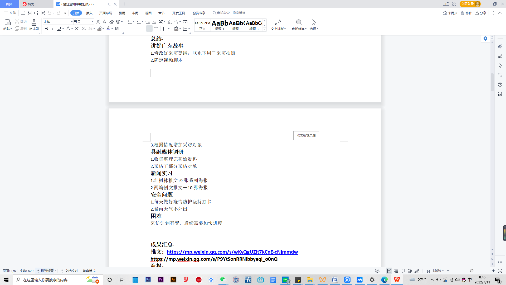 在活动期间,每个团队均向学院汇报平安以及团队目前防疫安全情况,保证在疫情政策允许的范围内进行融媒体的实习与进一步的实地调研与走访。