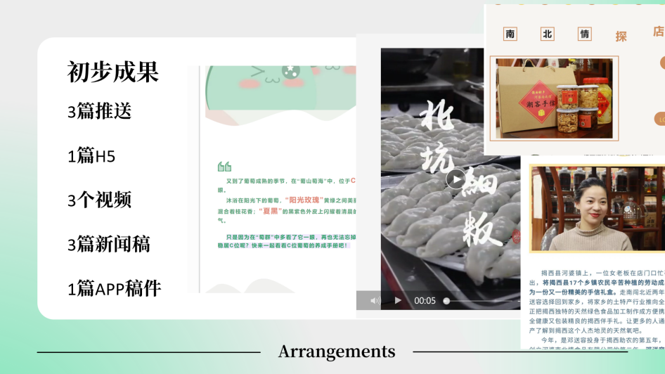 揭阳揭西团队积极认真协助当地融媒体中心进行日常的采编宣传工作,在本阶段一共完成1篇H5,1篇APP稿件,3篇推送,3个视频,3篇新闻稿,在过程中也发挥主观能动性,为融媒体宣传工作提供优质新鲜内容与形式。