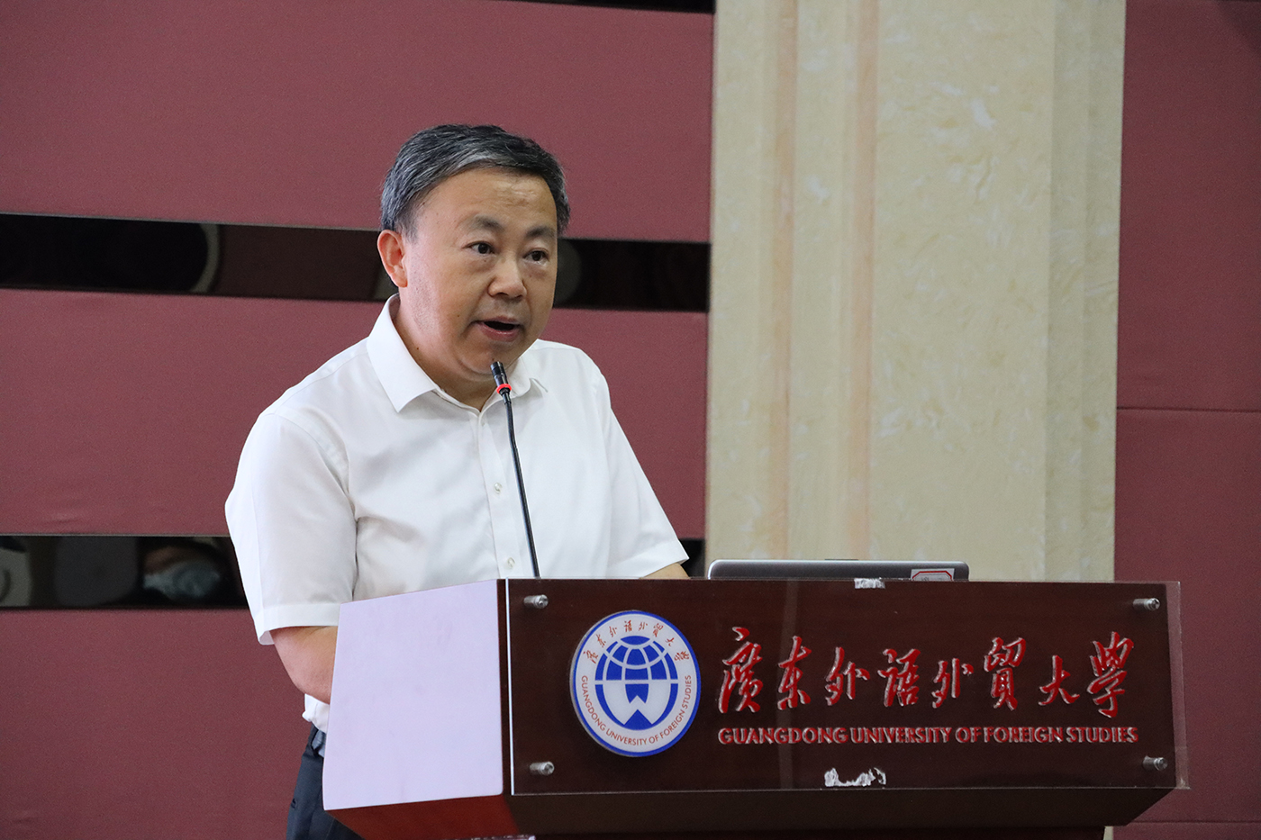 院长侯迎忠教授作开学典礼致辞,介绍了学院近年来的发展状况及成绩。他提到,经过全体师生的共同努力,学院已经成长为国际新闻传播教学科研与人才培养的华南重镇。2017年,学院成为广东省第二家部校共建新闻学院单位;2021年,学院获得广东省高水平大学建设重点学科“中华文化国际传播”;在最新发布的“软科中国最好学科”排名中,我院在全国600多所新闻院系中名列第17位。广外新闻学院已真正成为国内有一定影响力的新闻学院。