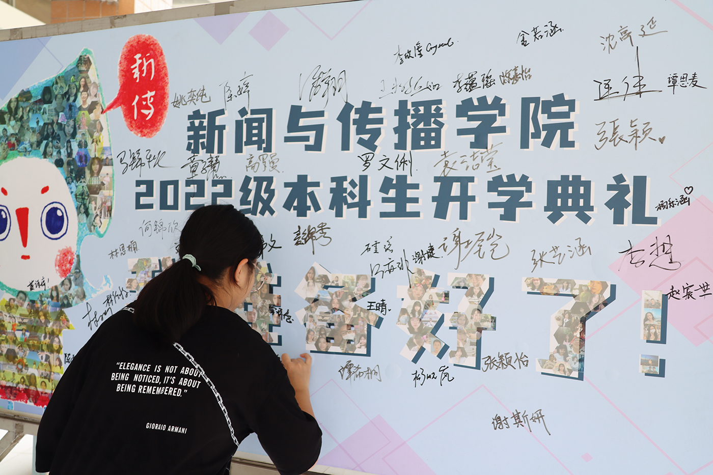新生在签名墙上签字