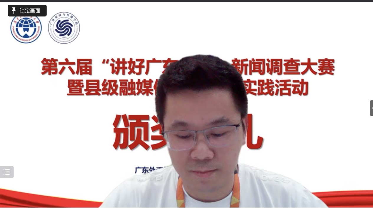 校党委常委、副校长刘海春教授在致辞中表示,“讲好广东故事”大赛以习近平新时代中国特色社会主义思想为统领、为推动县级融媒体高水平建设、服务广东乡村振兴高质量发展,贡献了广外智慧、青春力量。他称赞大赛一是“举旗帜”,以习近平新时代中国特色社会主义思想为统领,以马克思主义新闻观为指导,构建了“党建引领-课堂教学-媒体支持”三位一体的新闻实践模式;二是“筑平台”,推动了县级融媒体高水平建设”,与“县融”携手并肩,创造性、高标准地生产出各级各类优秀新闻作品,强化了“县融”作为“党走网上群众路线”的重要载体功能;三是“强战略”,服务乡村振兴高质量发展,建设了一个个广东乡村振兴的互联网信息枢纽,展现了乡村振兴中产业兴、农民富、乡村美的美丽画卷。