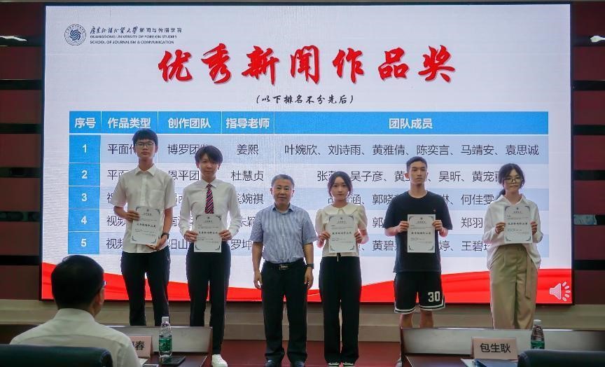 学院院长侯迎忠教授为“优秀新闻作品奖”获奖代表颁奖