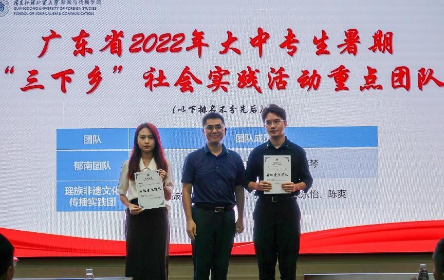 本次典礼颁发了优秀团队奖、优秀团队指导老师奖、优秀新闻作品奖、优秀县级融媒体调研报告奖、优秀“讲好广东故事”调研报告奖、广东省2022年大中专生暑期“三下乡”社会实践活动重点团队以及优秀组织者奖。