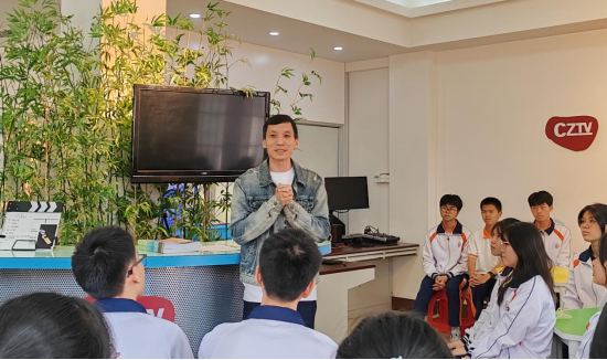 随后,老师们与龙川一中校园电视台、广播台、校园周报等社团学生进行座谈交流。姬广绪从专业角度指导学生社团如何做好新媒体运营。李峻岭为学生上了一堂生动而精彩的朗诵课,现场气氛热烈。
