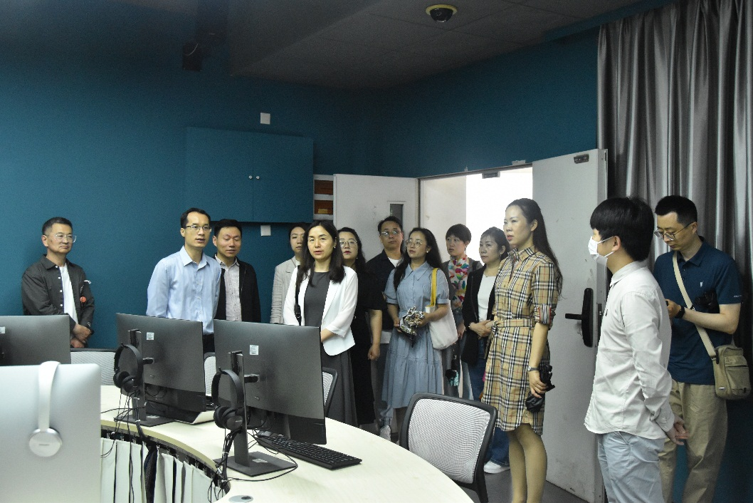 在包生耿书记的陪同下,西北师范大学传媒学院来访领导和老师参观了我院融媒体实验室。