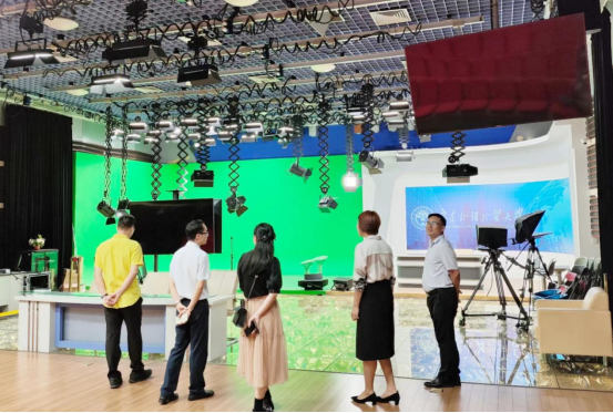 座谈会结束后,在学院领导和老师的陪同下,白云外国语中小学一行参观了我院虚拟仿真演播实验室和融合媒体实验室,对实验室的建设、管理与使用情况进行了深入的了解。
