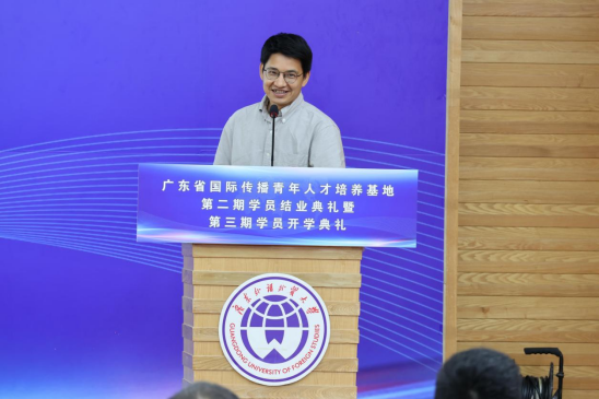 第二届学员代表广州广播电视台导演&编剧&记者、广东省电影家协会副主席谢德炬分享了在基地的学习成果和成长经历。在基地培养期间,谢德炬导演的院线电影《点点星光》获中国电影金鸡奖最佳儿童片、中国国际儿童电影展“最受小学生喜爱”奖等众多奖项。他提到,培训中的每一节集中授课、每一次学员研讨、每一趟实地考察都主题前沿、内容翔实,都具有鲜明的时代特性和现实意义,使之受益匪浅。老师们的授课都能帮助开拓视野、拓宽思路,从而更好地探求国际传播的新路径。他表示,在未来的日子里,希望大家能继续保持联系和合作,用世界可以听得懂的语言讲好中国故事,共同为国际传播事业贡献力量。